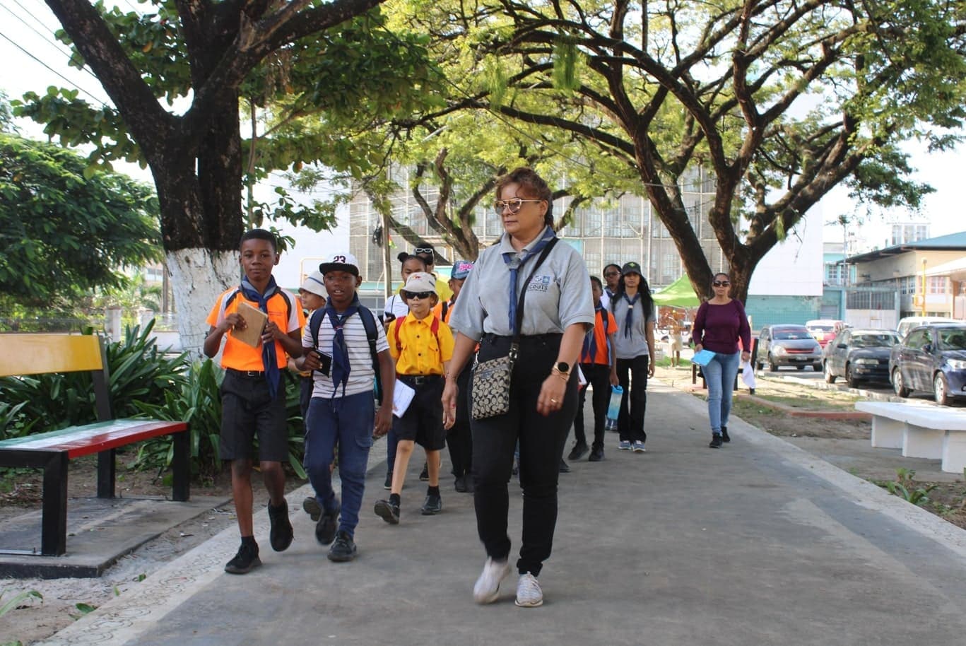Scouts embark on a sightseeing walk around Georgetown, Guyana.
